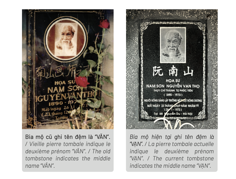 Trước đây, tên họa sĩ Nam Sơn thường ghi là Nguyễn Văn Thọ. Khoảng năm 2000, tại Hà Nội, chưa biết vì sao tên ông bỗng nhiên trở thành Nguyễn Vạn Thọ.Ngoại trừ những văn bản bằng tiếng Pháp, không ghi dấu nên chúng ta không thể phân biệt được “Văn” hay “Vạn”.