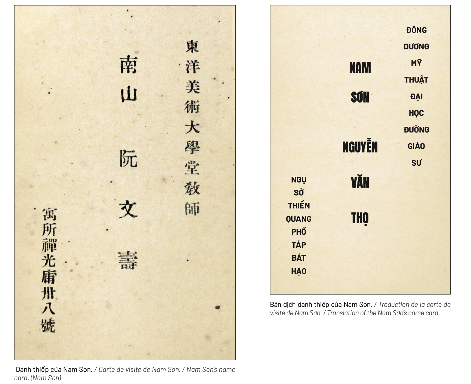 Danh thiếp của Nam Sơn do gia đình truyền lại, viết bằng chữ Hán