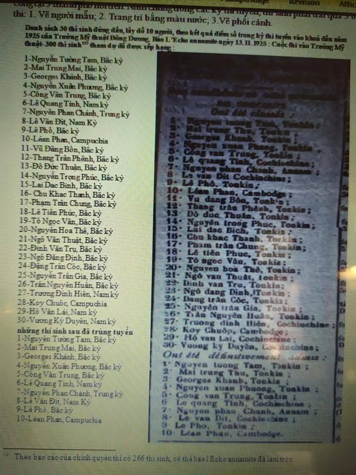 Sáu sinh viên tốt nghiệp khoá đầu tiên Trường Mỹ thuật Đông Dương là Lê Văn Đệ, Nguyễn Phan Chánh, Georges Khánh, Mai Trung Thứ, Công Văn Trung và Lê Phổ. Ngoại trừ Georges Khánh có cái tên và khuôn mặt lai tây, còn lại 5 vị đều gốc Việt. Cả 6 vị sau này đều đã trở thành những nghệ sĩ có tên tuổi và nổi tiếng trong lịch sử mỹ thuật Việt Nam.
